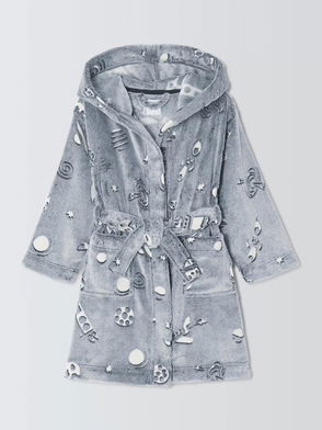 Kids' Space Glow In The Dark Dressing Gown, Grey