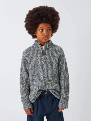 Kids' Twist Knit Zip Neck Jumper, Grey Multi