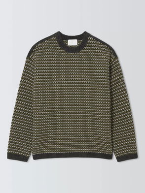 Merino Wool Blend Texture Stitch Jumper, Olive/Multi