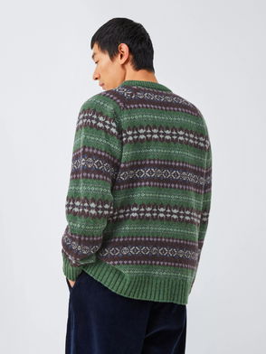 Closed Loop Initiative Crew Neck Fair Isle Recycled Wool Jumper, Green/Multi