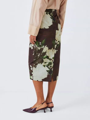 Taffeta Floral Print Midi Skirt, Multi