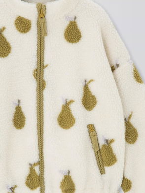 Kids' Pear Print Teddy Jacket, Cream, Green