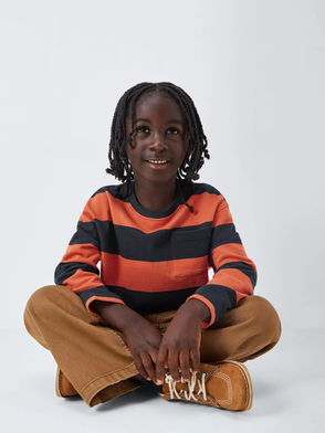 Kids' Block Stripe Jersey Top, Navy/Orange Stripe