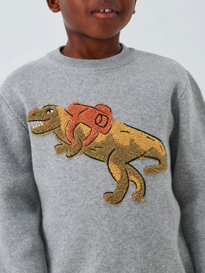 Kids' Boucle Dinosaur Jumper, Grey / Multi