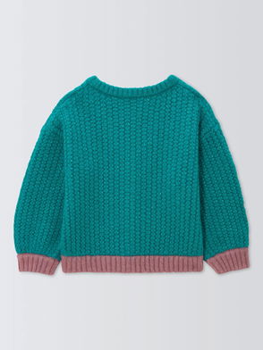 Kids' Checkerboard Knit Jumper, Teal/Cream