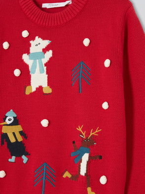 Kids' Graphic Reindeer Jumper, Red, Multi