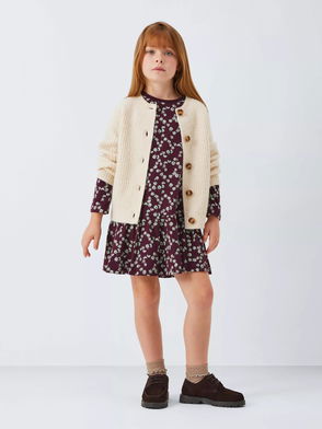 Kids' Floral Long Sleeve Smock Dress, Navy/Purple