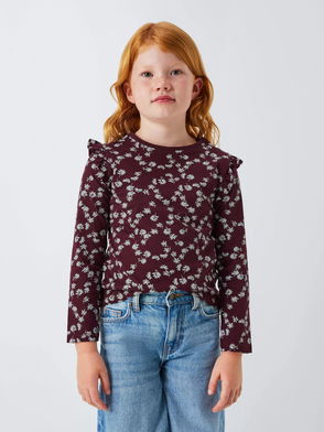 Kids' Floral Stripe Ruffle Jersey Tops, Pack Of 3, Berry, Navy