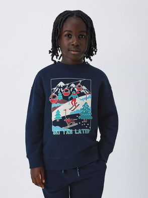 Kids' Christmas Ski Ya Later Graphic Jersey Top, Navy