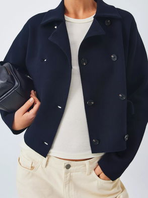 Double Breasted Cotton Blend Knit Jacket, Navy