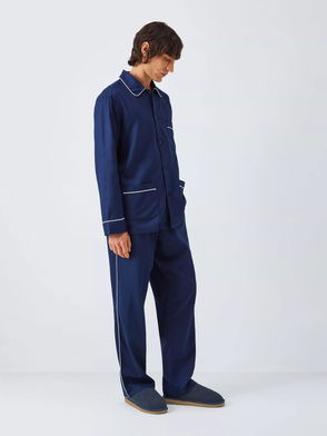 Poppy Floral Brushed Cotton Long Pyjama Set, Navy