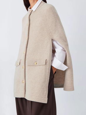 Lambswool Detachable Cowl Neck Tabard Jumper, Taupe