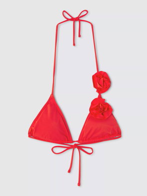 Las Flores Triangle Bikini Top, Red