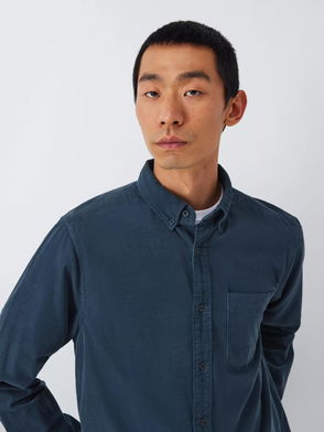 Regular Fit Button Down Collar Corduroy Shirt, Mood Indigo