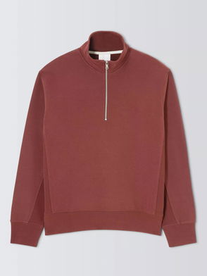 Half Zip Rib Cotton Knit Panel Sweatshirt
