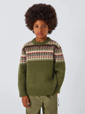 Kids' Fair Isle Yoke Jumper, Green / Multi