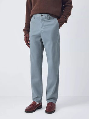 Straight Fit Cotton Blend Chino Trousers, Sky Captain