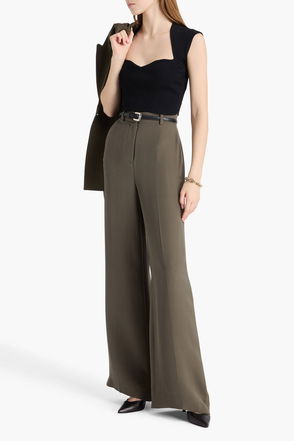 Drew Belted Stretch-Crepe Tapered Pants