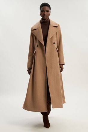 Wool Corset Detail Full Skirted Tailored Maxi Coat