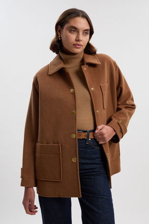 Brushed Wool Patch Pocket Tailored Medium Coat