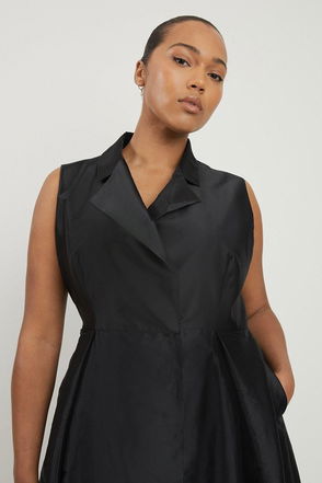 Lydia Millen Plus Size Taffeta Full Skirt Tailored Wrap Shirt Midi Dress