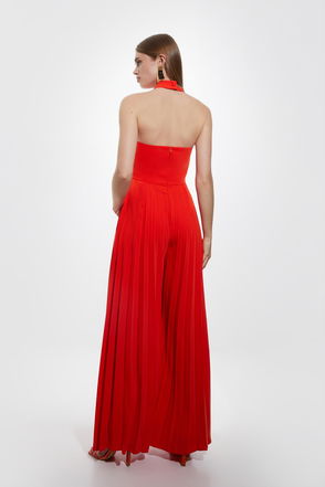 Soft Tailored Full Pleated Halter Neck Jumpsuit