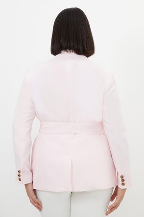 Plus Size Premium Tailored Linen Tie Waist Longline Blazer