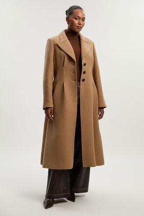 Plus Size Wool Corset Detail Full Skirted Tailored Maxi Coat