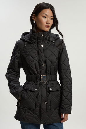 Diamond Quilted Belted Short Puffer Trench Jacket