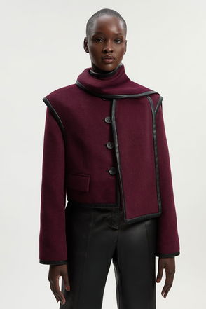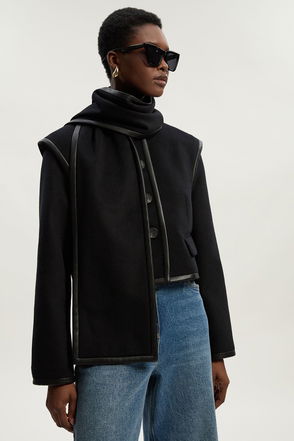 Brushed Wool Pu Mix Detachable Scarf Tailored Crop Coat