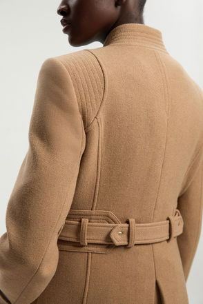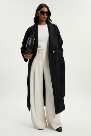 Wool Investment Notch Neck Belted Detail Tailored Maxi Coat