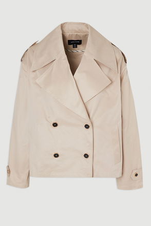 Petite Brushed Wool Pu Mix Detachable Scarf Tailored Crop Coat
