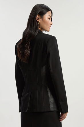 Ponte And Pu Mix Waist Seam Detail Tailored Single Breasted Blazer