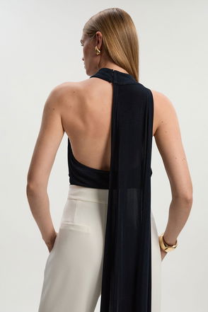 Premium Slinky Crepe High Neck Scarf Detail Bodysuit