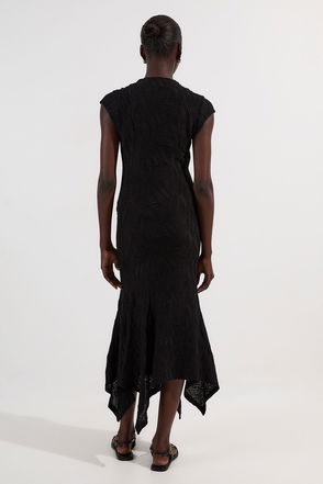 Textured Hanky Hem Short Sleeve Trim Detail Jersey Maxi Dress