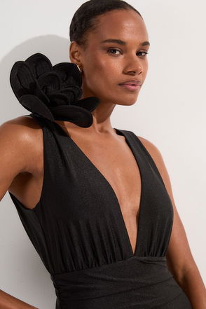 Floral 3D Embellished Halter Tie Neck Woven Maxi Dress