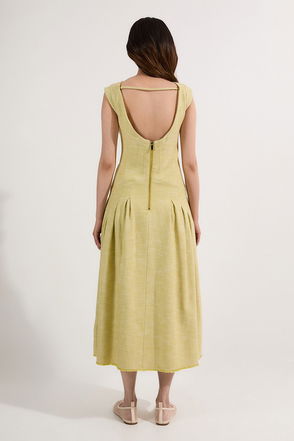 Premium Linen Twill Topstitch Woven Maxi Dress