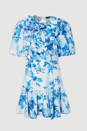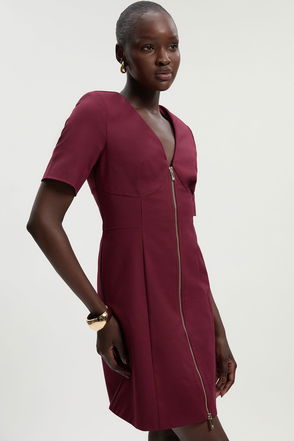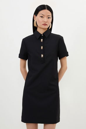 Tall Techno Cotton Short Sleeve Zip Detail Woven Mini Dress