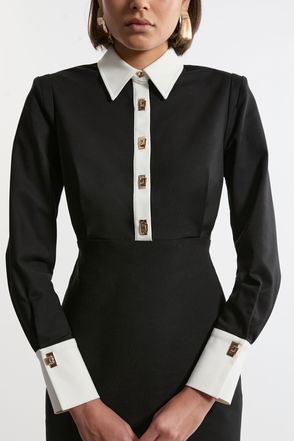 Techno Cotton Woven Maxi Dress With Contrast Placket