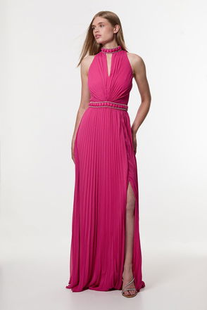 Petite Halter Neck Feather Sequin Detail Woven Maxi Dress