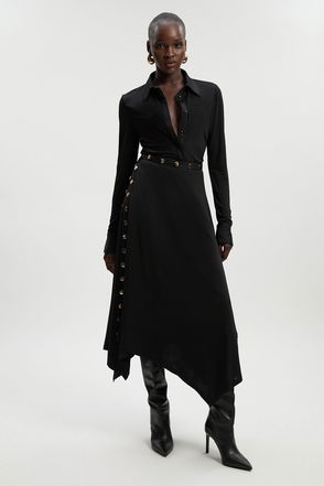 Petite Drapey Crepe Hanky Hem Eyelet Detail Maxi Skirt