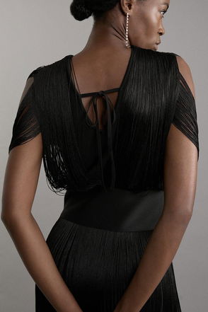 Premium Crystal Embellished Fringe Maxi Dress