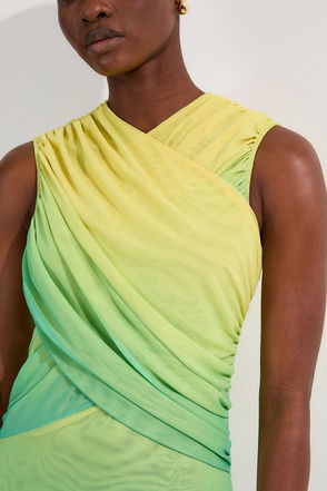 Petite Sunset Ombre Mesh Wrap Bodice Jersey Maxi Dress