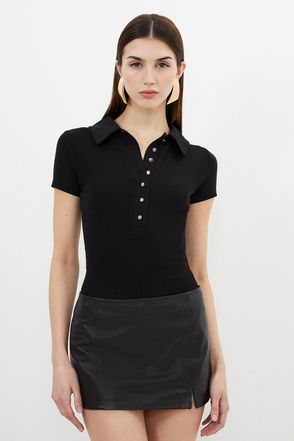 Viscose Rib Jersey Short Sleeve Collared Top