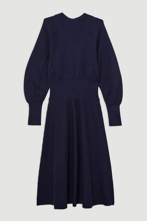 Wool Look Rounded Sleeve Knit Midi Dress