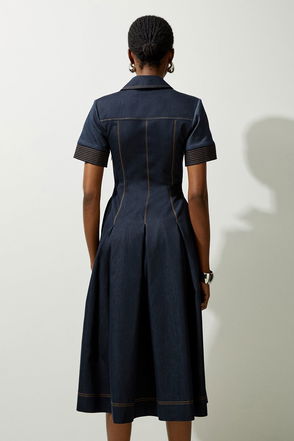 Petite Tailored Denim Full Skirted Midi Shirt Dress