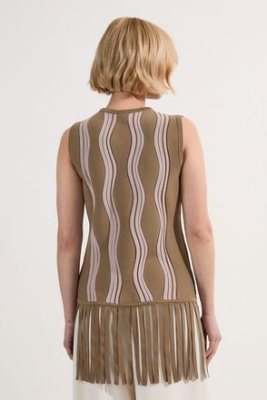 Contrast Wave Knit Top With Fringing
