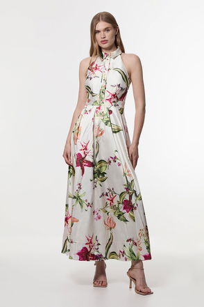 Garden Floral Twill Collared Maxi Dress
