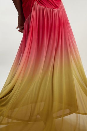 Embellished Ombre Floral Pleated Woven Maxi Dress