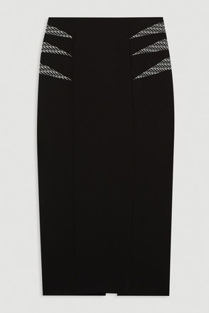 Compact Stretch Jacquard Insert Midi Pencil Skirt